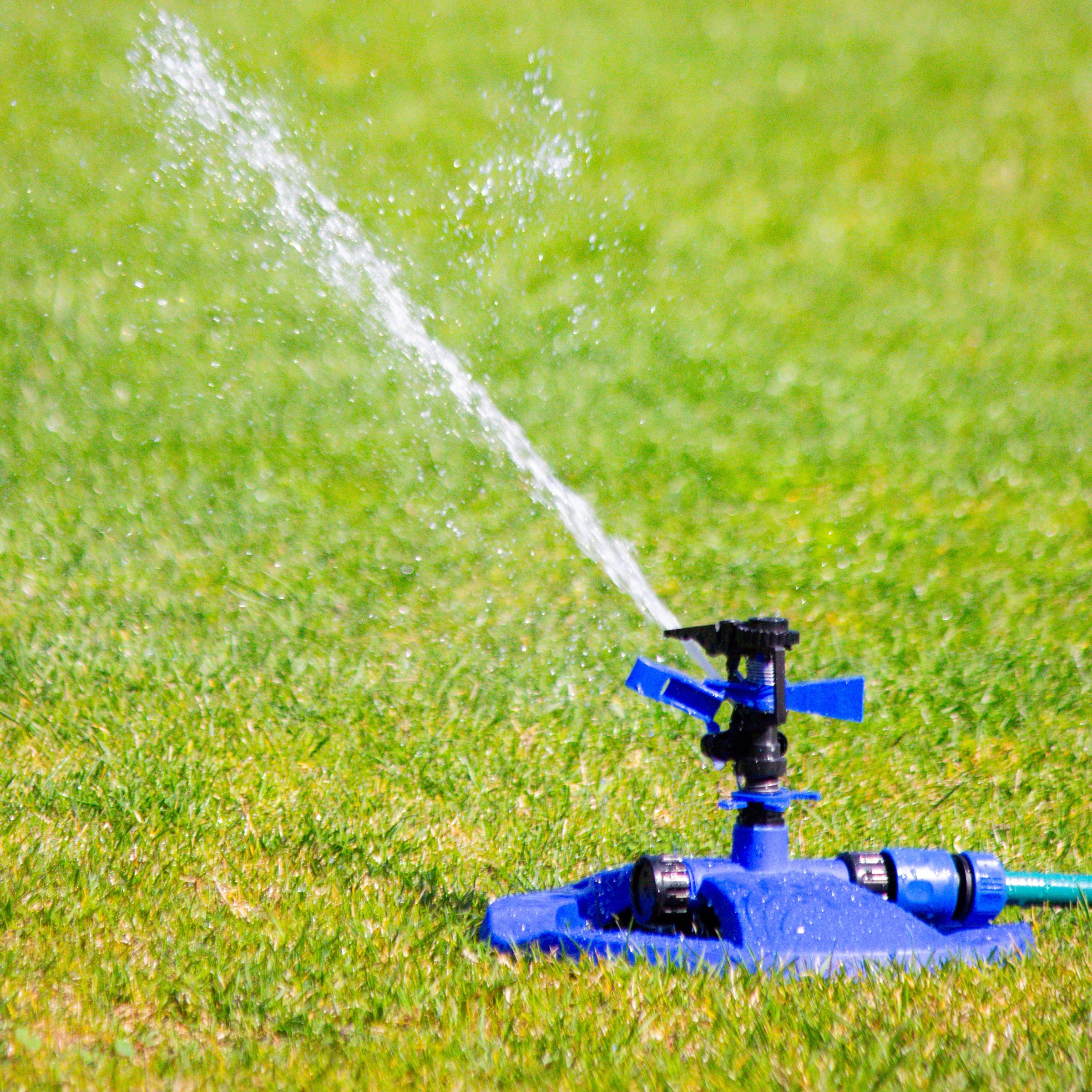Aspersor giratorio de 360° con base circular, ideal para el riego uniforme de jardines, áreas verdes y césped. Su diseño estable y de fácil conexión permite una distribución homogénea del agua, asegurando un riego eficiente en todo tipo de superficies.